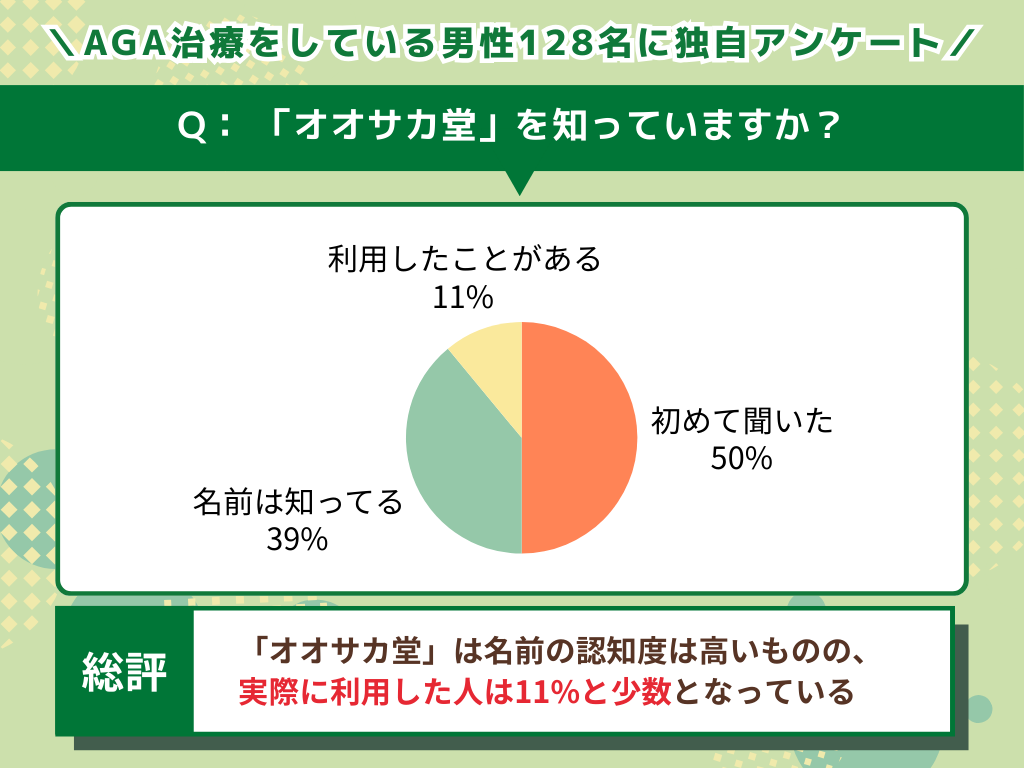 AGA治療経験のある男性への独自調査でも、オオサカ堂について質問をしてみました。