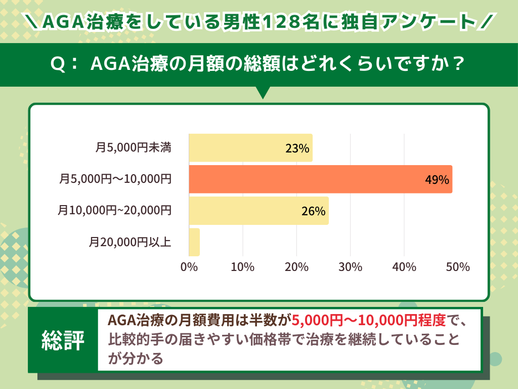 AGA治療は費用が毎月定期的にかかるため、継続しやすい価格設定かどうかも大切です。